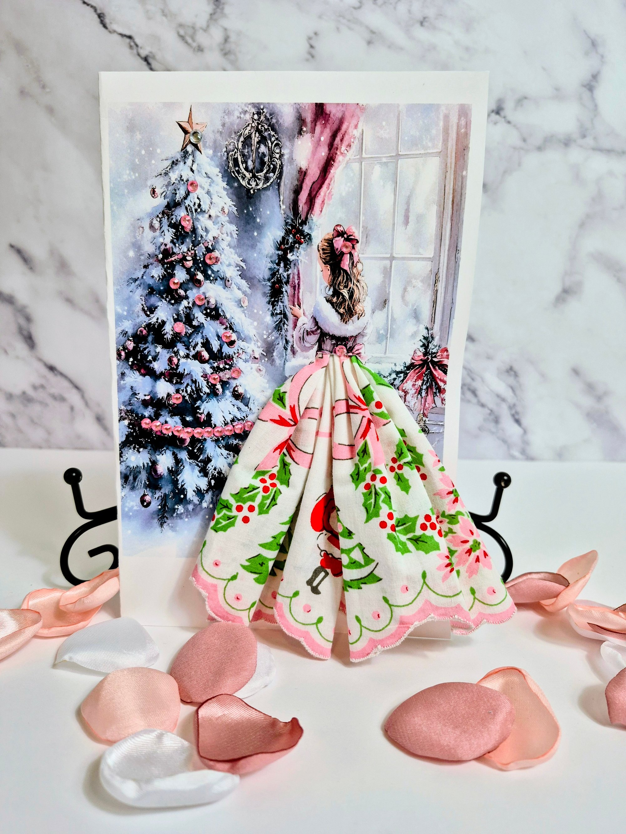 Nostalgic Christmas Card Lady in Pink